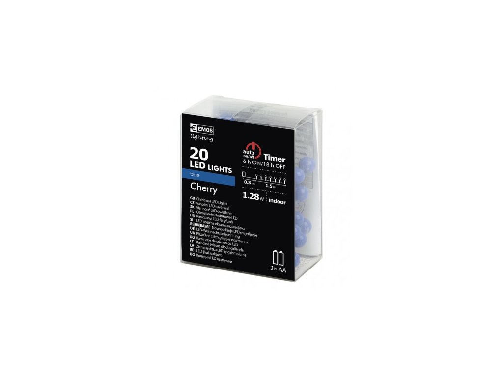 LED vánoční řetěz – kuličky, 2× AA, vnitřní, modrá, časovač
