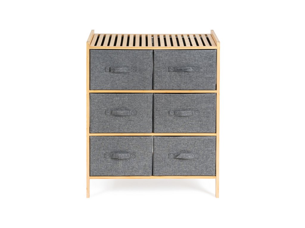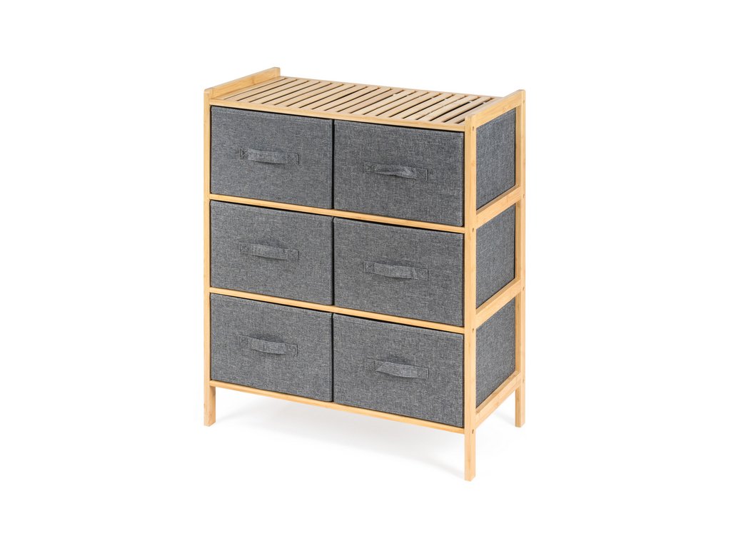 Praktický stojan se 6 výsuvnými textilními košíky ušetří spoustu místa a uložíte do něj vše, co potřebujete. Potřeby na praní nebo kosmetiku, oblečení i dětské hračky. Každý košík má objem 20 litrů, šířka je 31 cm, výška 19 cm a hloubka 35 cm. Celý stojan má na výšku jen 78,5 cm.