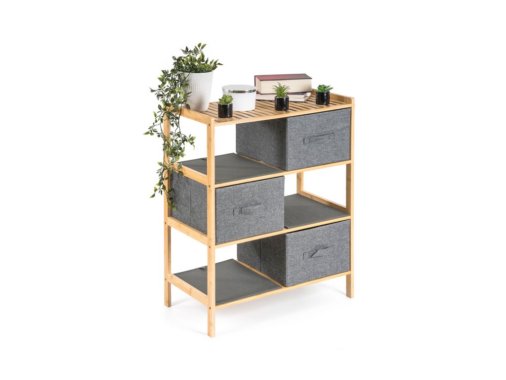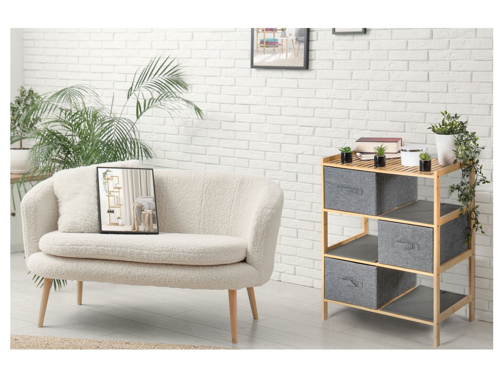- Určení: bambusový regál s textilními košíky