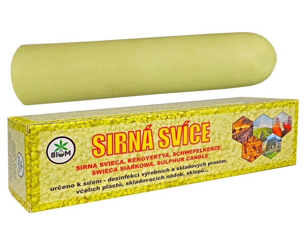 Biom sirná svíce je pomocný přípravek určený k síření sklepů, skladů a jiných uzavřených a prázdných prostor před opětovným naskladněním produktů. Sirnou svíci využijí jak včelaři, sadaři, zelináři, zahrádkáři, ale i všichni, kteří potřebují vydezinfikovat sklepy, skleníky a jiné prostory. Sirná svíce spolehlivě ničí škůdce, mikroorganismy, plísně a spory plísní.