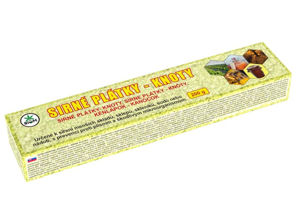 Biom sirné plátky jsou pomocný přípravek určený k síření menších sklepů, skladů, sudů, demižónů apod. před opětovným naskladněním produktů. Sirné plátky využijí jak včelaři, sadaři, zelináři, zahrádkáři, ale i všichni, kteří potřebují vydezinfikovat menší sklepy, skleníky a jiné prostory či nádoby. Sirné plátky spolehlivě ničí škůdce, mikroorganismy, plísně a spory plísní. Sirné plátky jsou vyrobeny ze speciálního papíru s mikro skleněnými vlákny nové generace potaženy tenkou vrstvou síry.