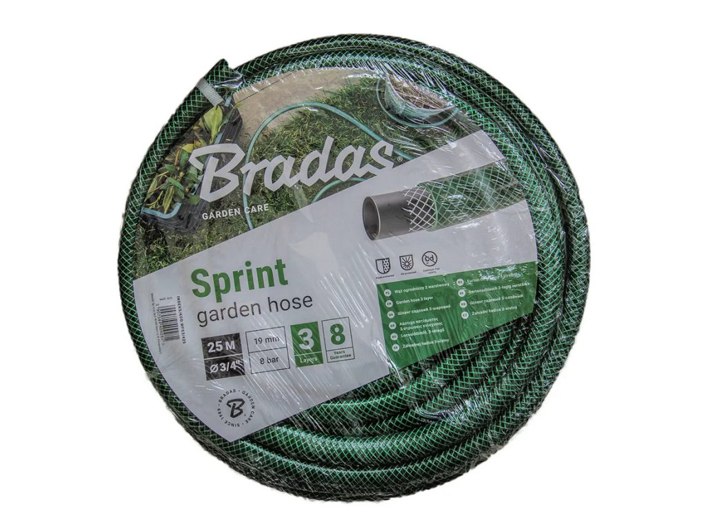 Vyztužená zahradní hadice SPRINT 3/4" z měkčeného PVC, která se skládá ze 3 vrstev: