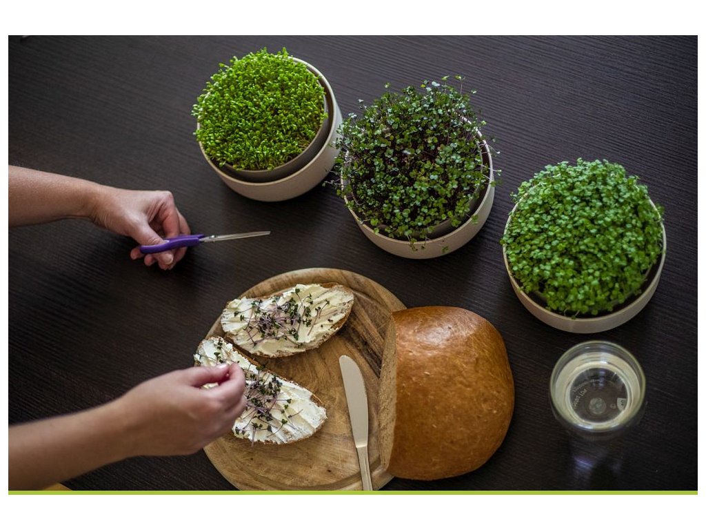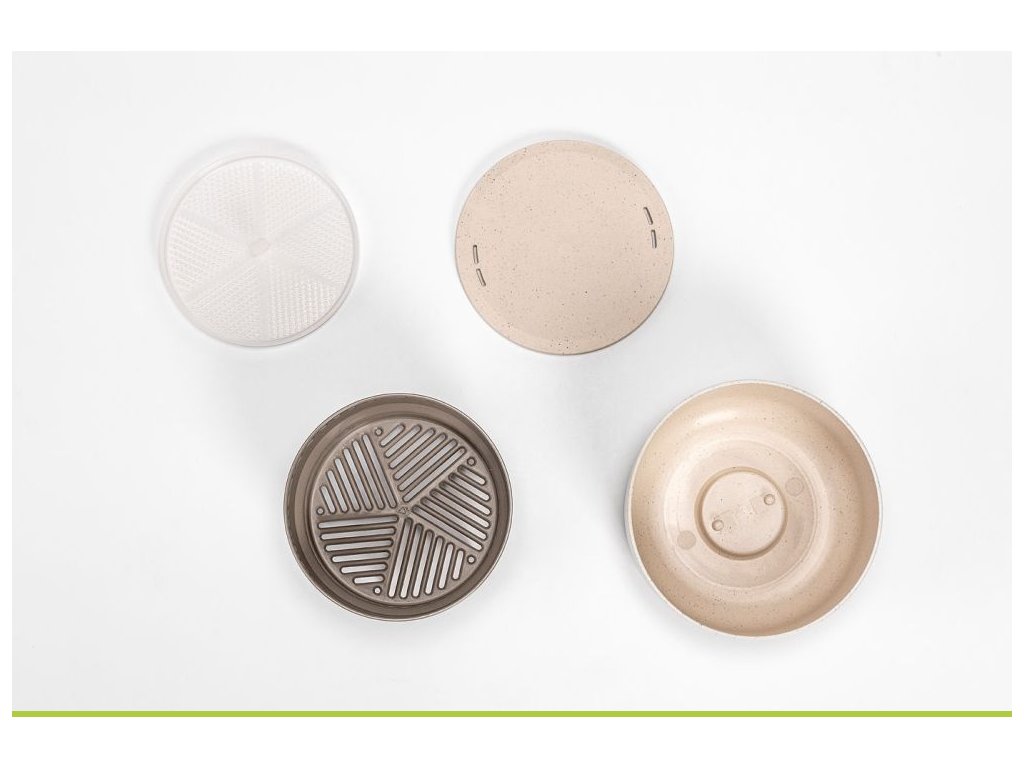 Pěstování microgreens nikdy nebylo jednodušší. Pro tuhle čerstvou zásobárnu vitamínů a minerálů nemusíte na trh, vypěstujete si ji jednoduše na kuchyňské lince. Stačí jen semínka, gel nebo perlan a za 6 dní se připravte na sklizeň. Vyzkoušejte svěží chuť jetele, rukoly, vojtěšky, hořčice, červeného zelí nebo ředkviček. Microgreens využijete pro přípravu polévek, salátů, quiche pro ozdobení pesta i sladkých pokrmů. Fantazii se meze nekladou. Pěstování je tak jednoduché, že úspěch je v podstatě zaručen. Doporučujeme kombinovat s dalšími výrobky: regrow nebo miska na avokádo, díky nim můžete mít na parapetu malou farmu, která vás denně bude zásobovat čerstvými výpěstky. Pro vývoj microgreens jsme dali hlavy dohromady s designérským studiem WRKS. Microgreens si můžete vybrat ze dvou variant. Z původního materiálu nebo z původního materiálu s příměsí kávové sedliny, která byla použita jako barvivo. BPA free. Výrobek je vhodný pro styk s potravinami.