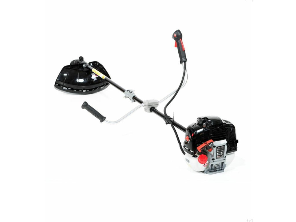 - Kosa je vybavena vyžínací hlavou , která umožňuje prodloužení vlasce po přitlačení hlavy k zemi a trojitou kovovou čepelí určenou pro velké plevele a houštiny.