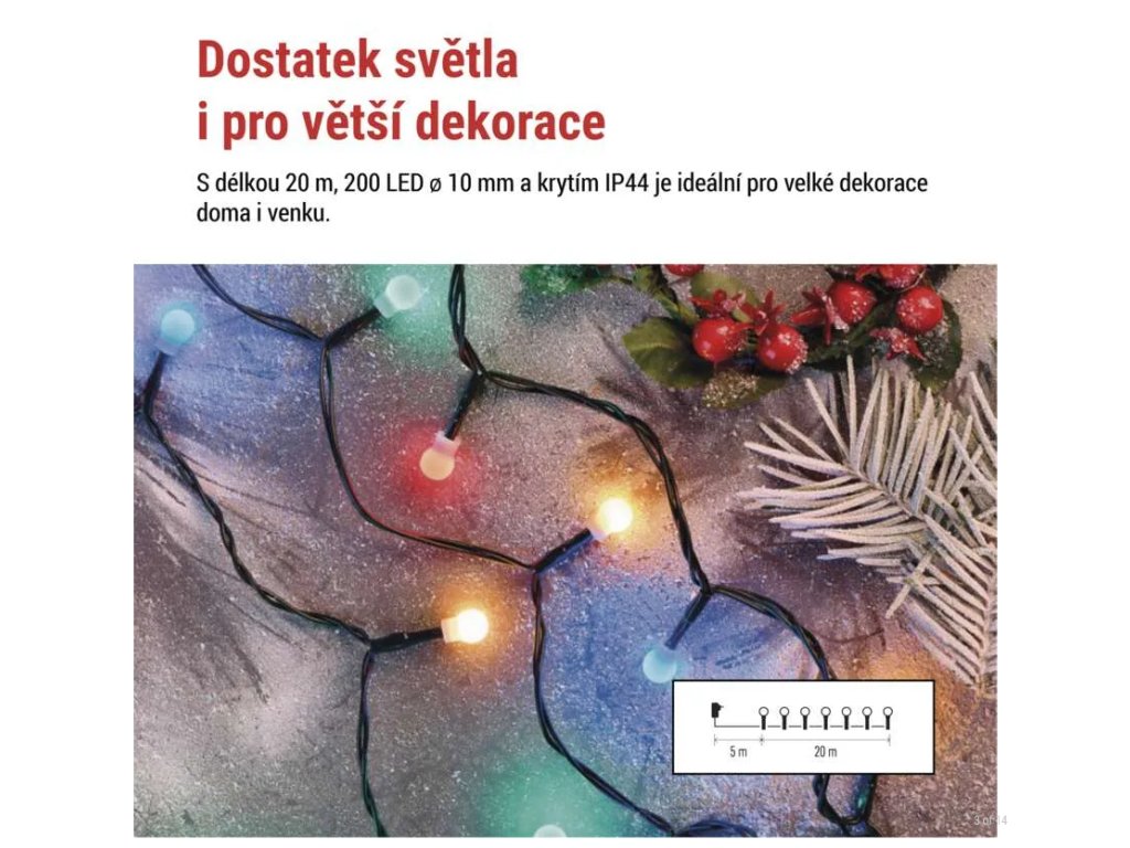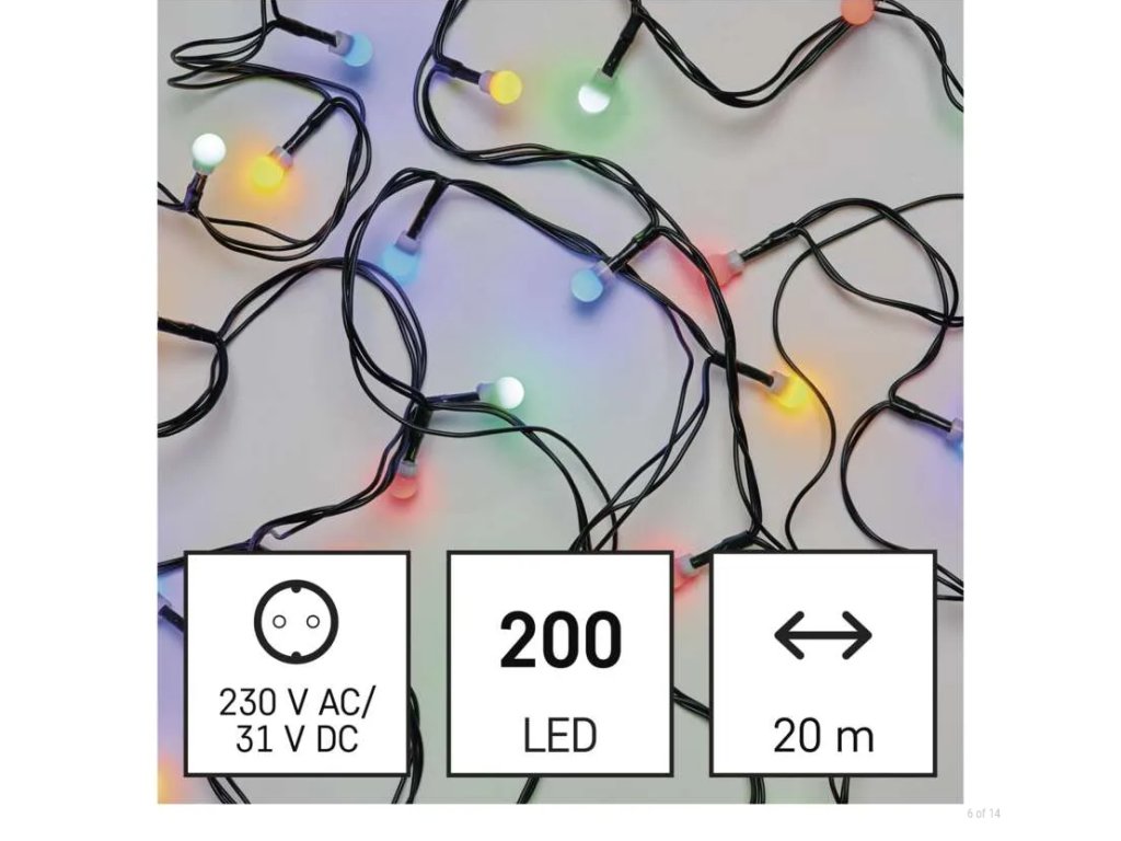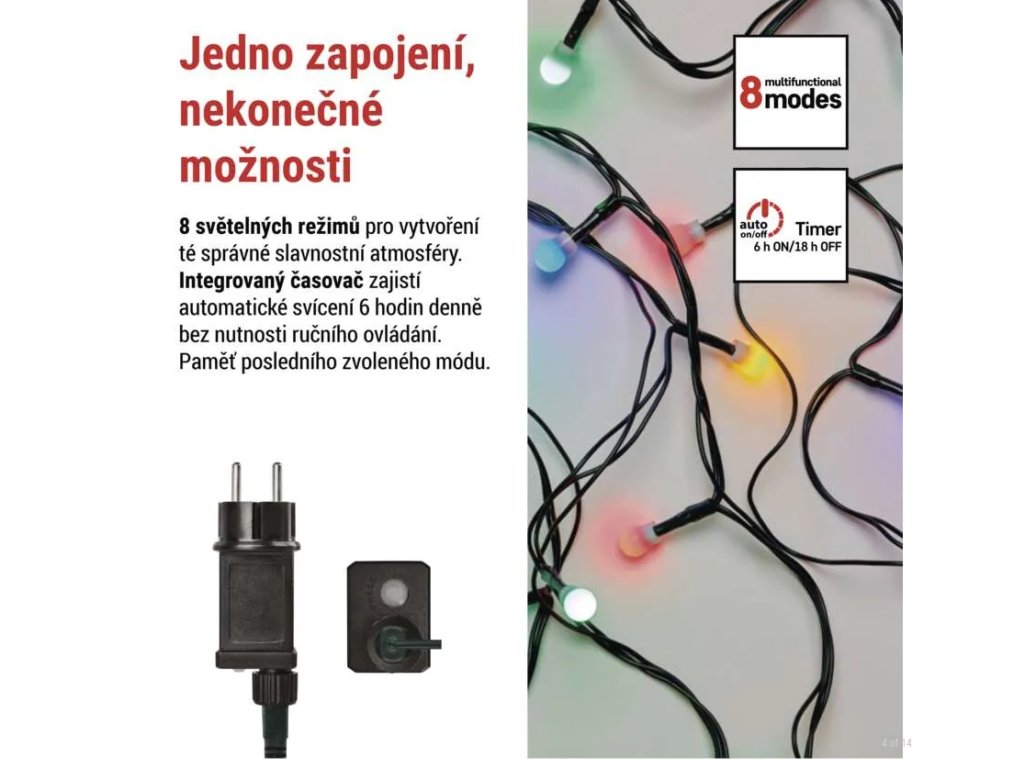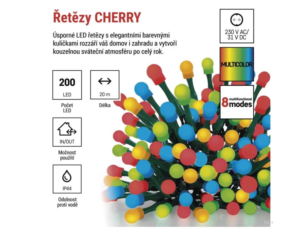 LED vánoční cherry řetěz – kuličky, 20 m, venkovní i vnitřní, multicolor, programy,časovač