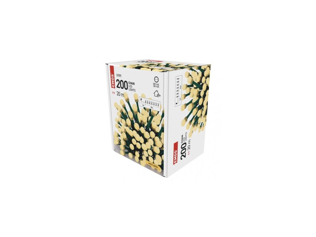 LED vánoční cherry řetěz – kuličky, 20 m, venkovní i vnitřní, teplá bílá, časovač
