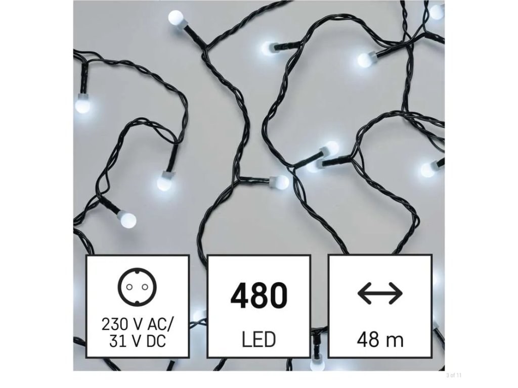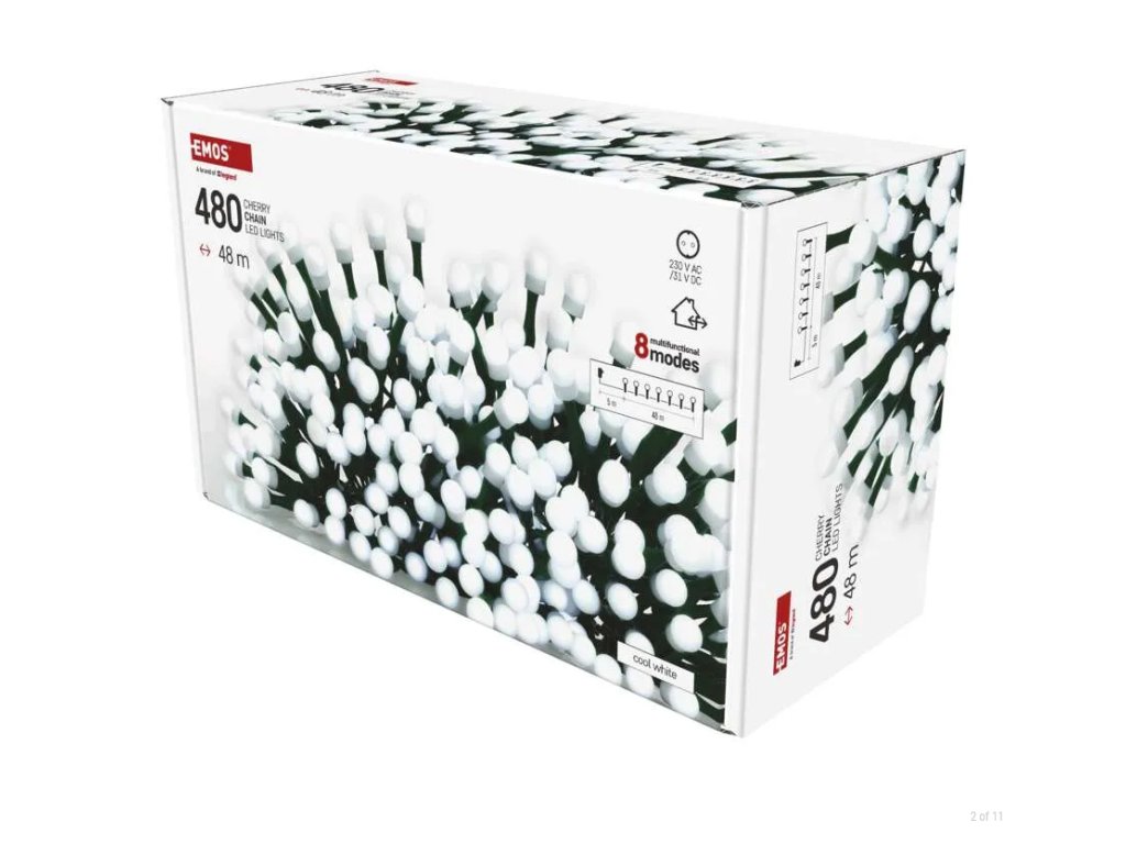 LED vánoční cherry řetěz – kuličky, 48 m, venkovní i vnitřní,studená bílá,programy,časovač