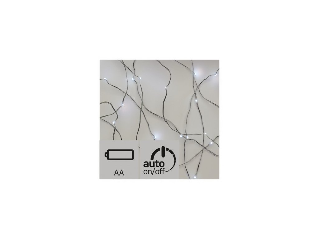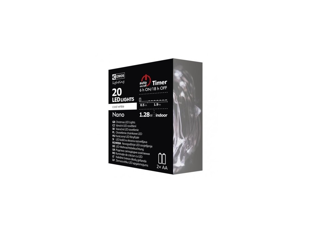 LED vánoční nano řetěz, 2× AA, 1,9m, studená bílá, časovač