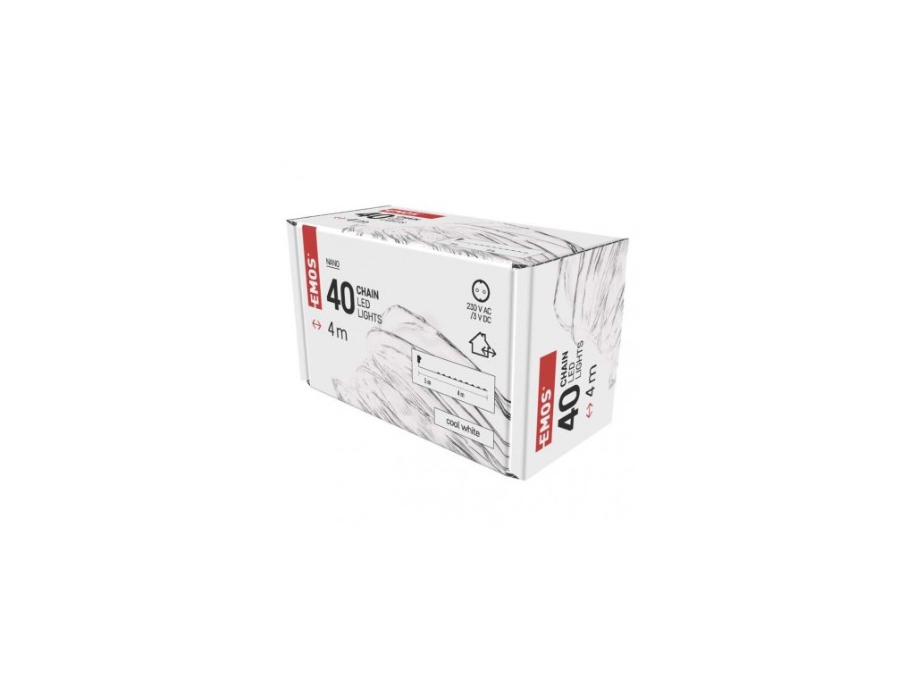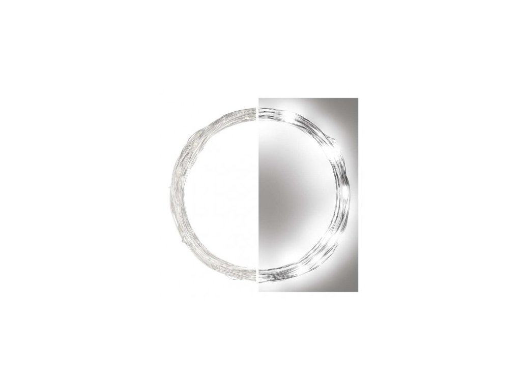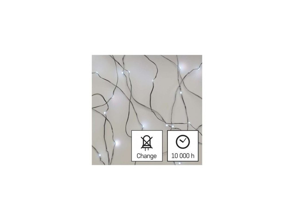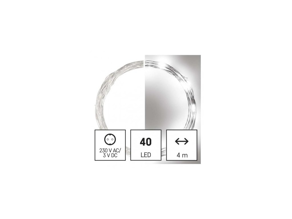 LED vánoční nano řetěz stříbrný, 4 m, venkovní i vnitřní, studená bílá, časovač