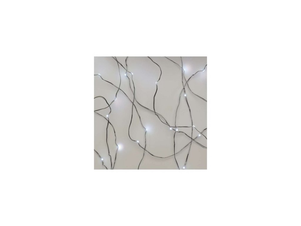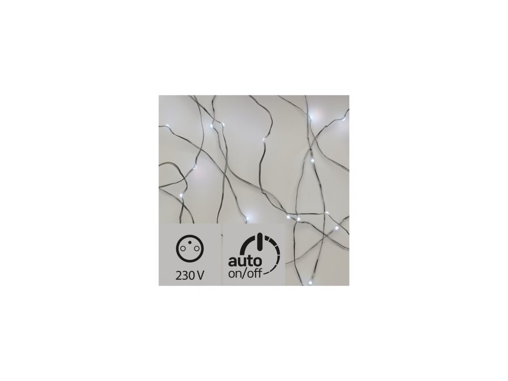 LED vánoční nano řetěz stříbrný, 4m, venkovní, stud.b., čas.