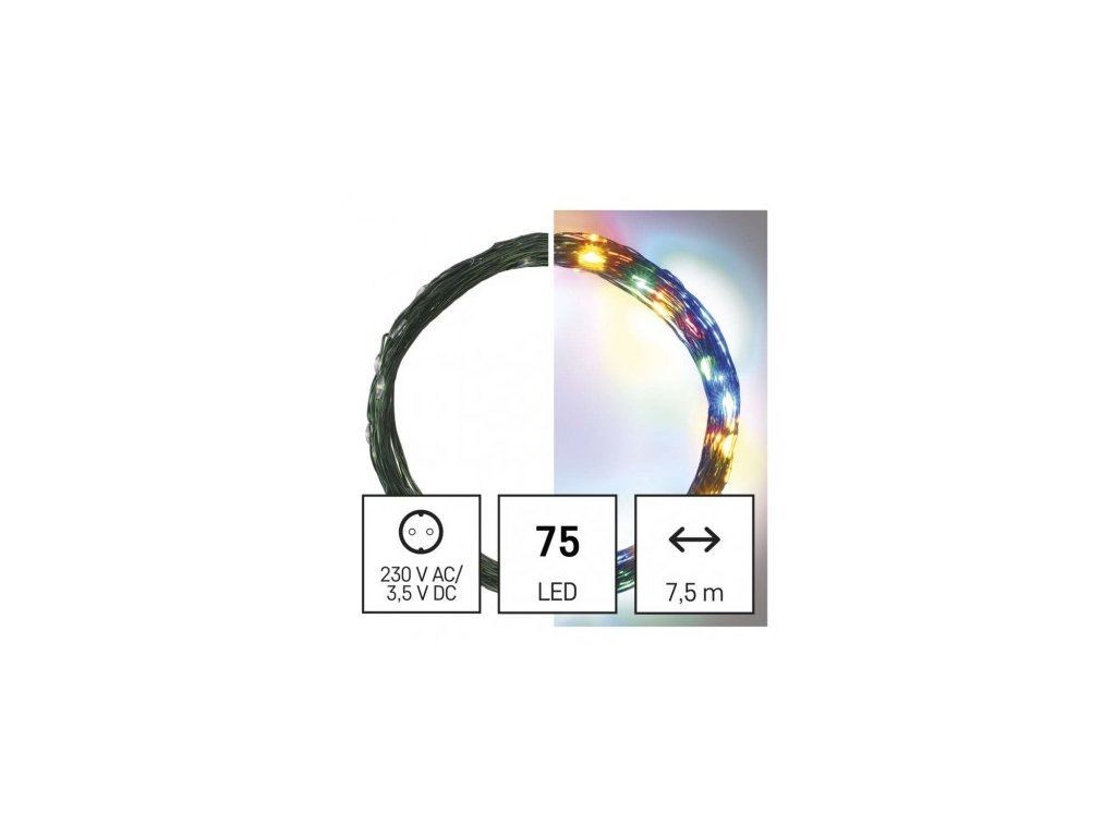 LED vánoční nano řetěz zelený, 7,5 m, venkovní i vnitřní, multicolor, časovač
