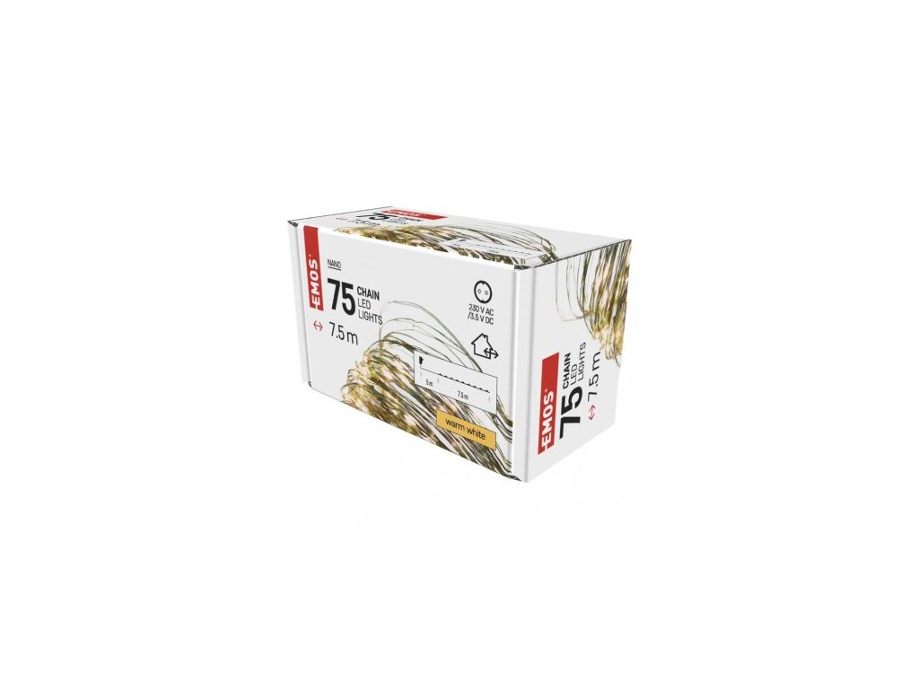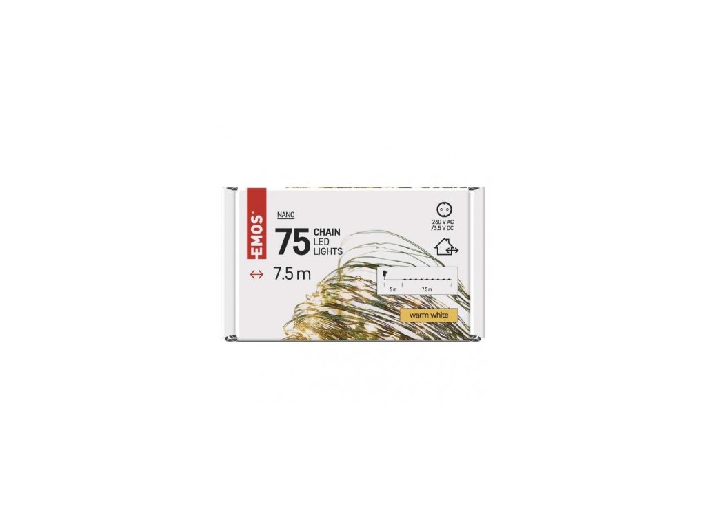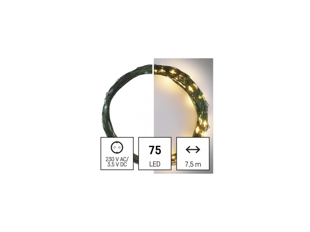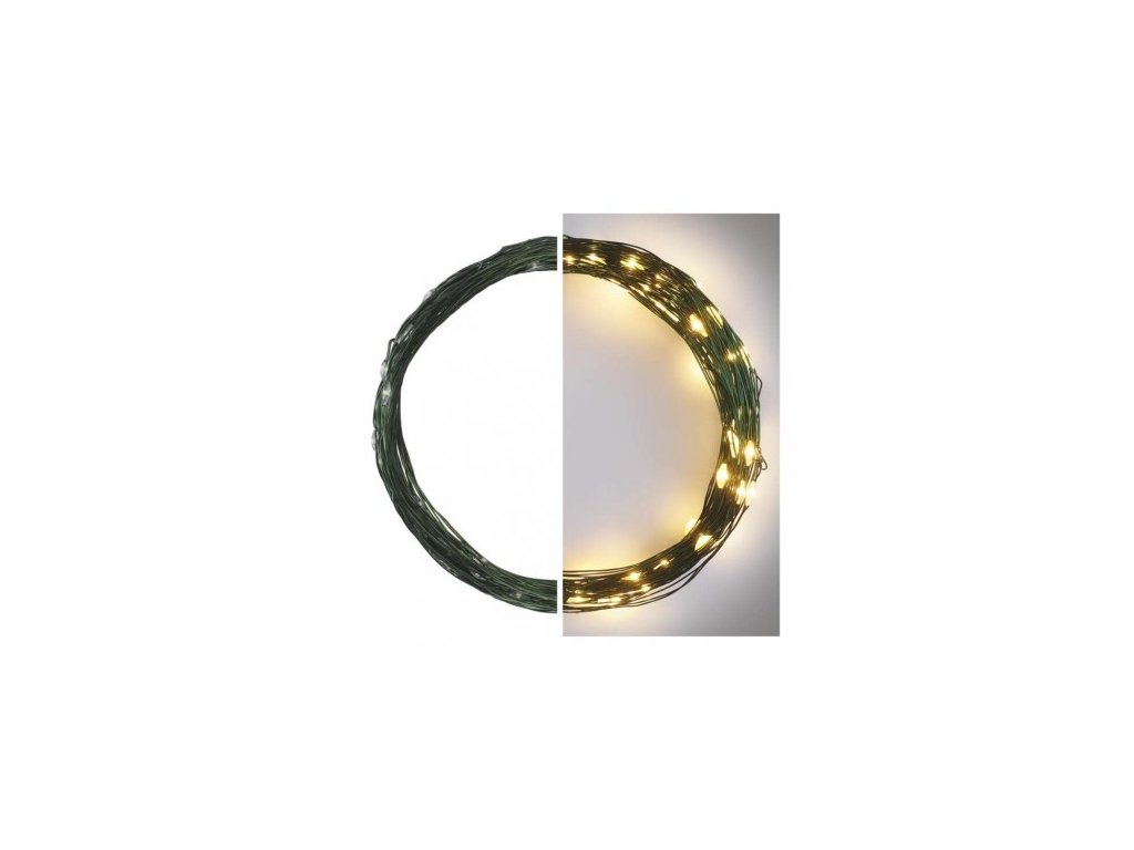 LED vánoční nano řetěz zelený, 7,5 m, venkovní i vnitřní, teplá bílá, časovač