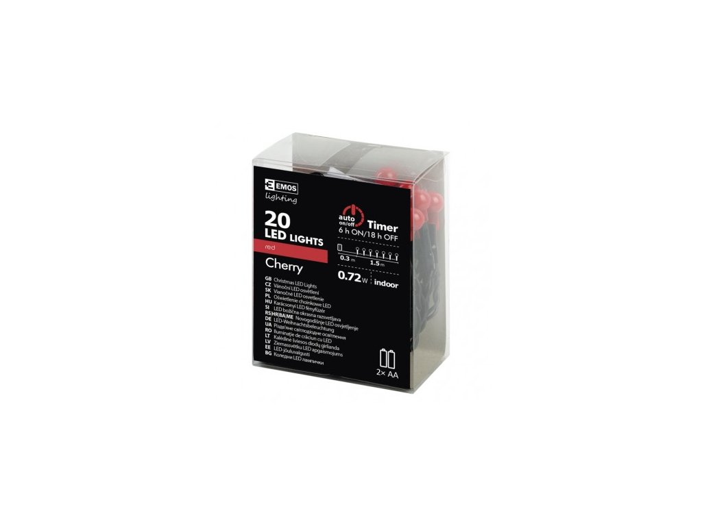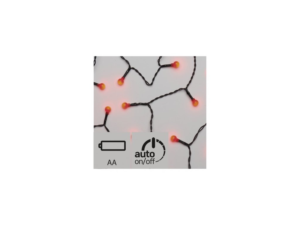 LED vánoční řetěz – kuličky, 2× AA, vnitřní, červ., časovač