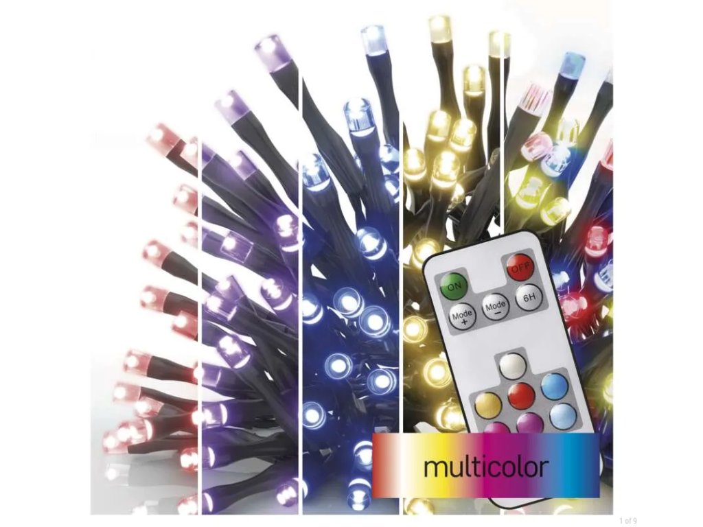 LED vánoční řetěz, 12 m, venkovní i vnitřní, RGB, ovladač, programy, časovač