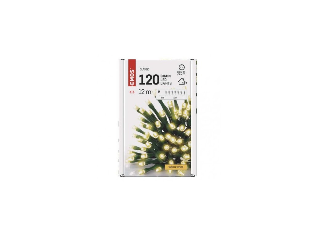 LED vánoční řetěz, 12 m, venkovní i vnitřní, teplá bílá, časovač