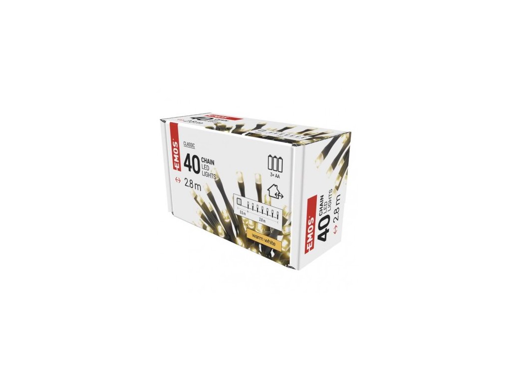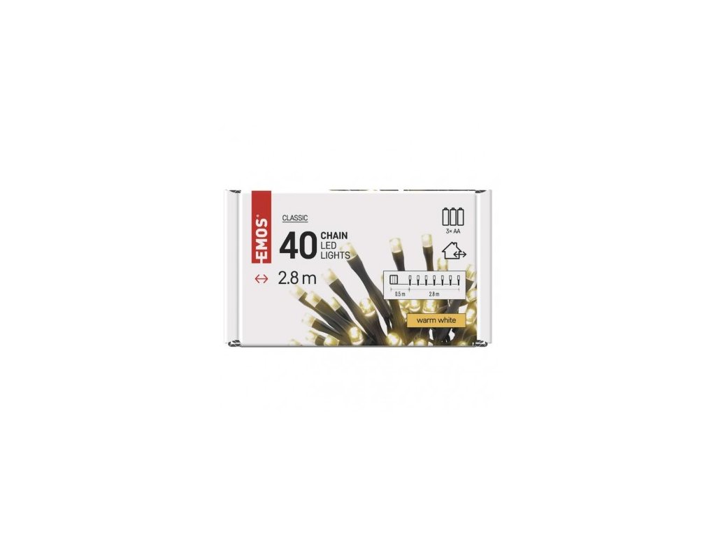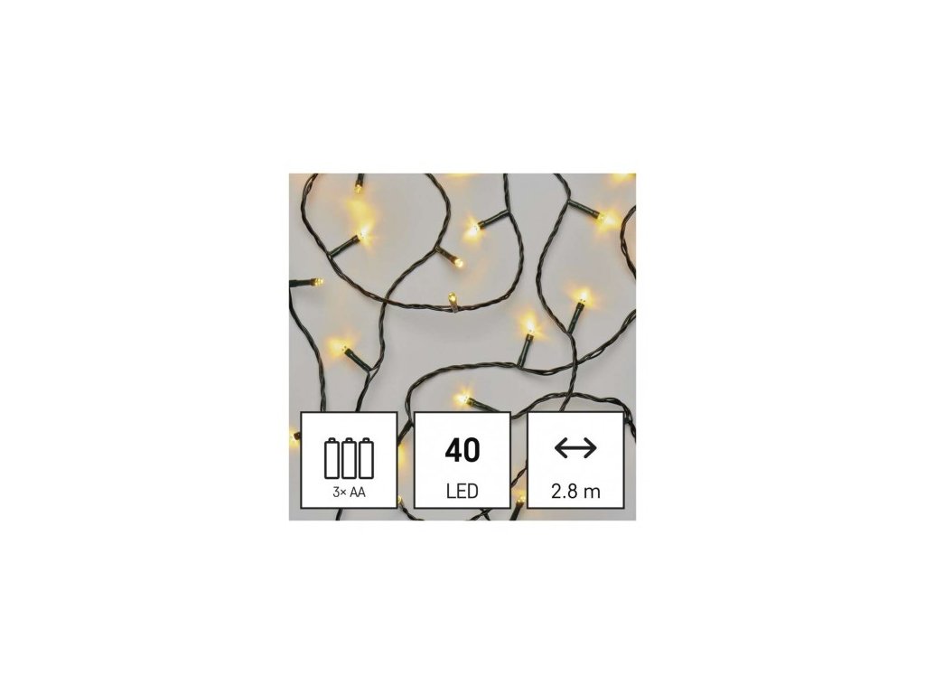 LED vánoční řetěz, 2,8 m, 3x AA, venkovní i vnitřní, teplá bílá, časovač