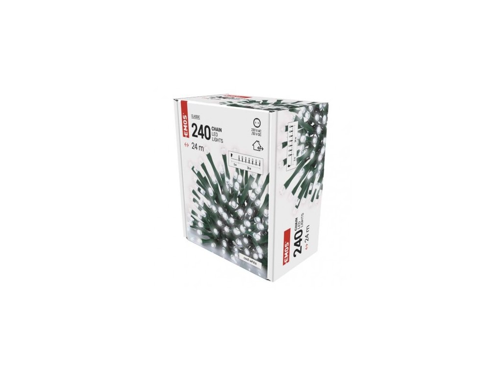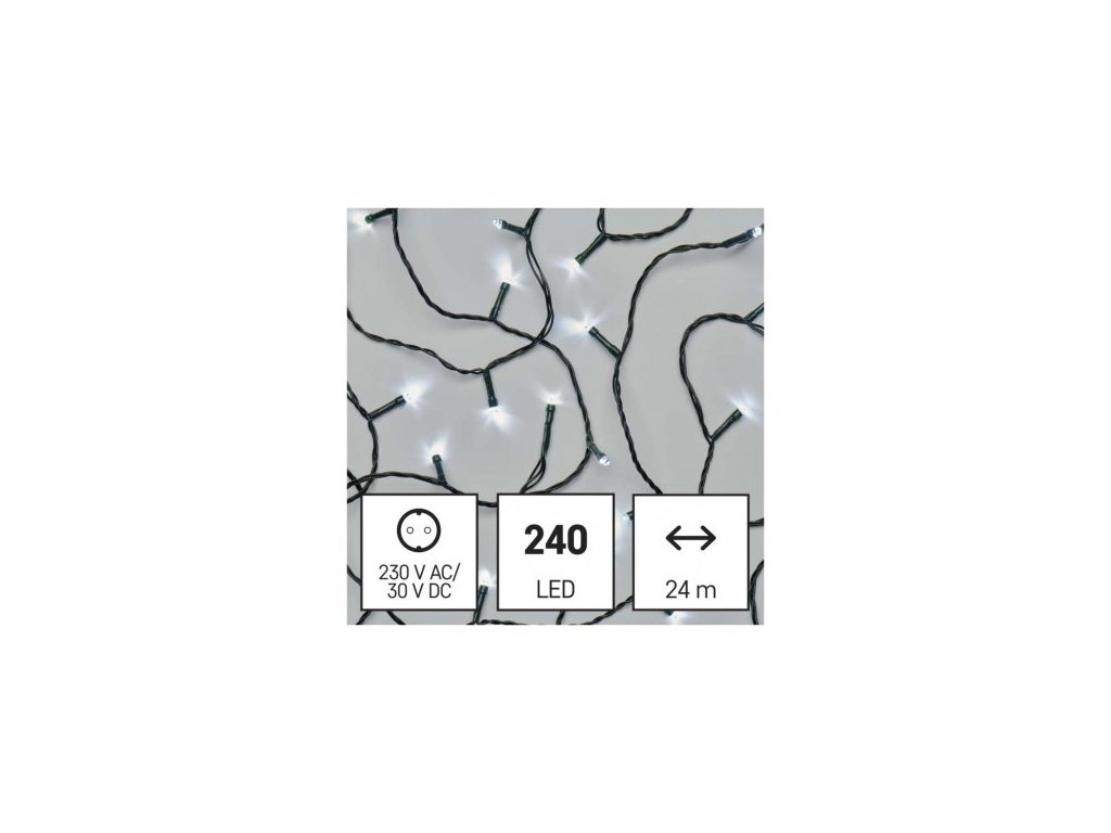 LED vánoční řetěz, 24 m, venkovní i vnitřní, studená bílá, časovač