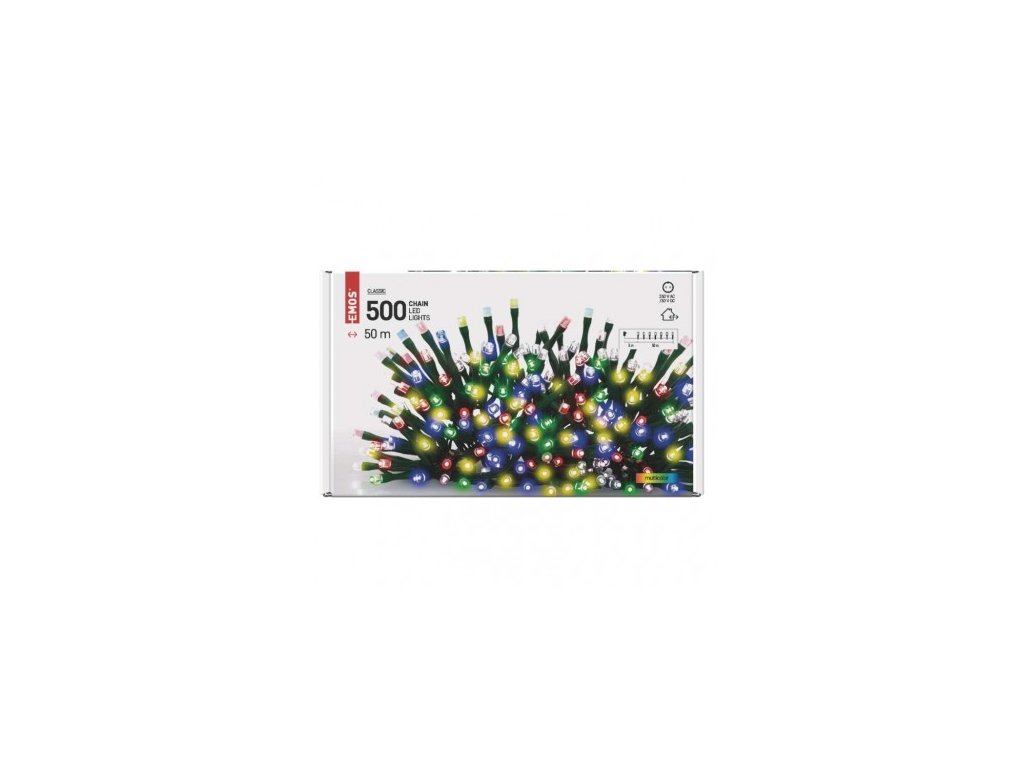 LED vánoční řetěz, 50 m, venkovní i vnitřní, multicolor, časovač