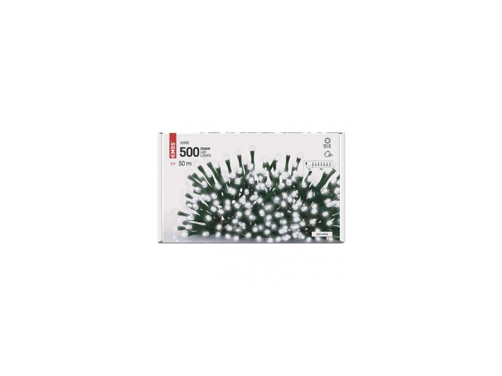 LED vánoční řetěz, 50 m, venkovní i vnitřní, studená bílá, časovač