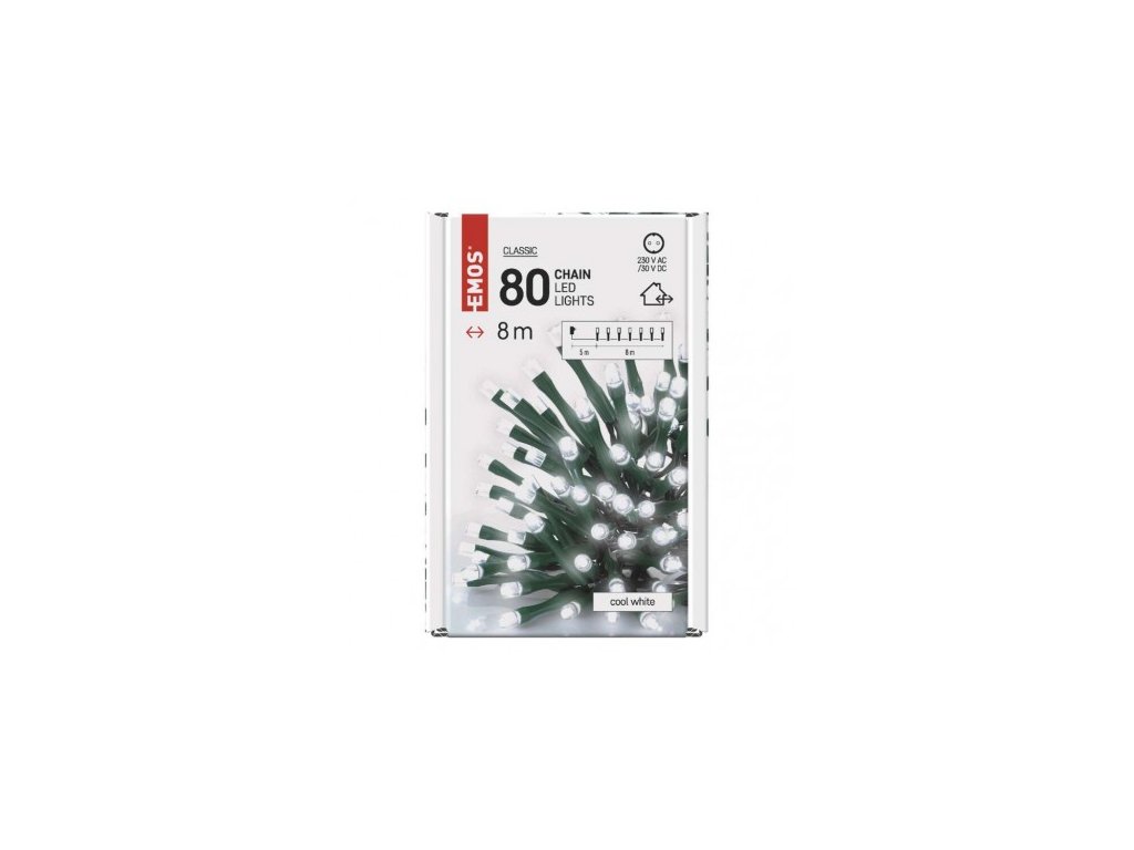 LED vánoční řetěz, 8 m, venkovní i vnitřní, studená bílá, časovač