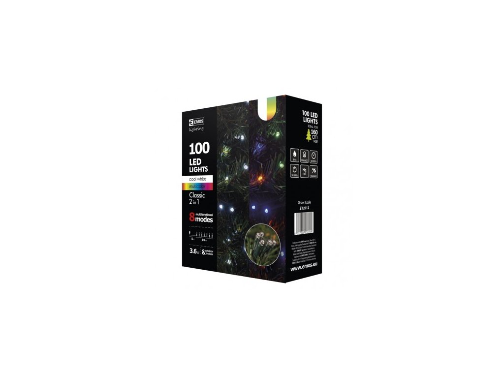 LED vánoční řetěz 2v1, 10m, studená bílá/multicolor,programy
