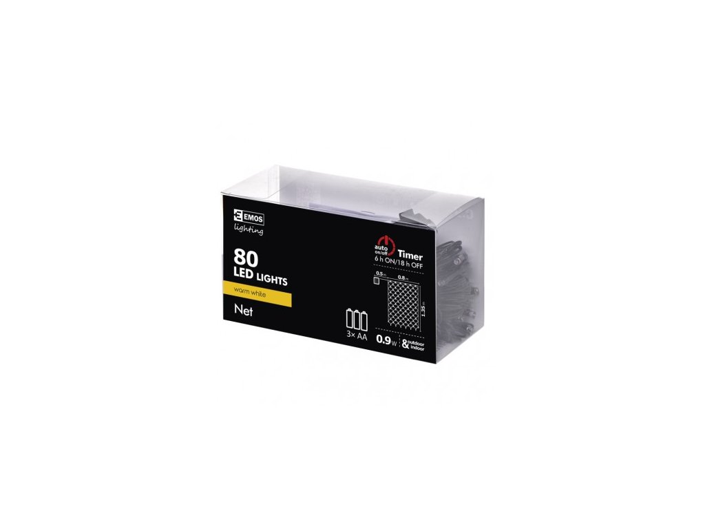 LED vánoční síť, 3× AA, venkovní, teplá bílá, časovač