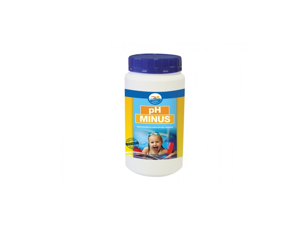 Přípravek pro snižování hodnoty pH bazénové vody. Voda ke koupání má mít hodnotu pH v rozmezí 6,8 - 7,6. Přidáním 80 g přípravku pH MINUS na každých 10 m3 vody v bazénu se sníží hodnota pH přibližně o 0,1. Balení: 1,5 kg.
