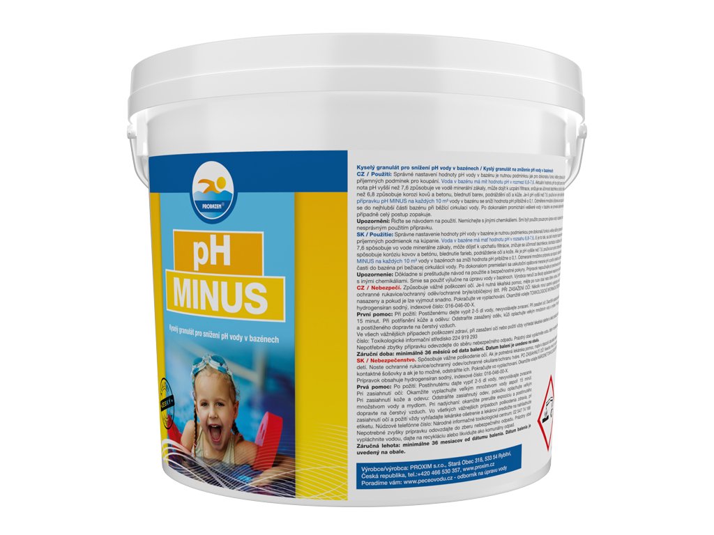 Sypký, vodě rozpustný přípravek pro úpravu pH vody v bazénech. PH vody by mělo být 6,8 - 7,6. Měření by se mělo provádět minimálně 2 x týdně pH testrem. Pro snížení pH o 0,1 se obvykle dávkuje 80 g přípravku na 10 m3 vody v bazénu. Při aplikaci nejprve rozmícháme v menším množství vody, ideálně v 1 l. Balení: 3 kg.