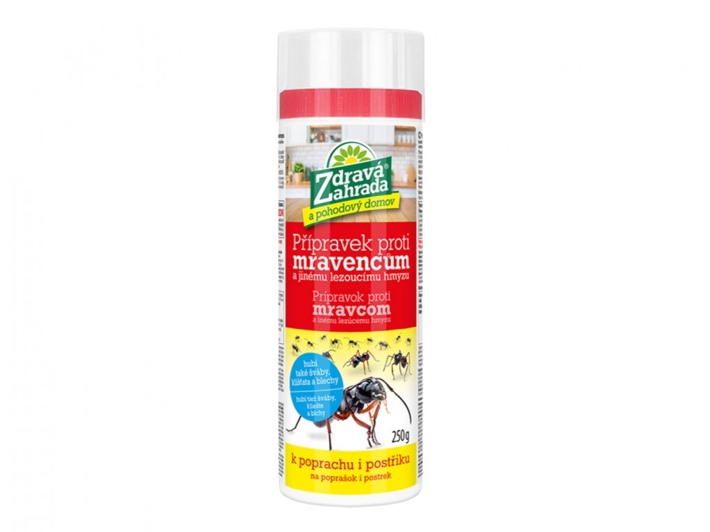Přípravek proti mravencům a jinému lezoucímu a létajícímu hmyzu ve formě prášku. Vhodný do exteriéru i interiéru. Je určený k hubení mravenců (černých, argentinských, faraonu), švábů (amerických, německých, orientálních), klíšťat a blech. Lze použít ve formě poprachu anebo ve formě postřiku. Účinná látka: chrysanthemum cinerariaefolium, výtažek z otevřených a zralých květů Tanacetum cinerariifolium. Velikost balení: 250 g.