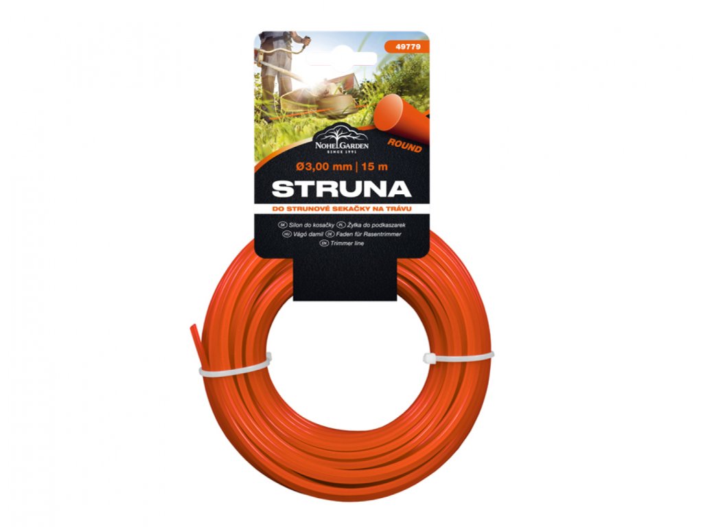 Žací struna NOHEL GARDEN je určena pro většinu vyžínačů, křovinořezů a strunových sekaček dostupných na trhu. Optimální pro sekání vysoké i nízké trávy. Profil struny a zesílená vnitřní část struny umožňuje hladké sečení. Díky své tvrdosti má vysokou odolnost proti spečení i třepení. Snadná instalace do sekací hlavice. Barva: oranžová. Profil: kruhový. Průměr: 3 mm. Délka: 15 m.