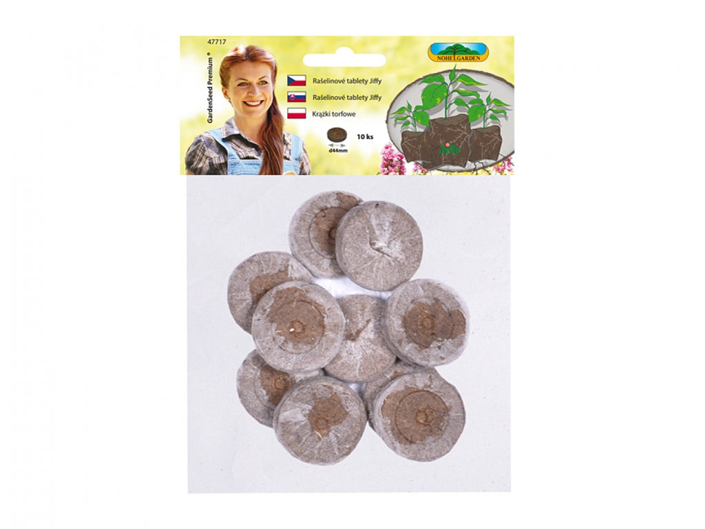 Tablety po nabobtnání vodou vytvářejí více než náhradu rašelinových kontejnerů plněných substráty. Po přidání do vody rychle nabobtnají a jsou připraveny k použití. Tablety jsou vyrobeny z kvalitní sphagnové rašeliny obsahující minerály upravující jejich kyselost a živiny. Jsou opatřeny rozložitelnou síťkou umožňující umožňující i řízkování. Balení: 15 ks. Průměr tablety: 44 mm.