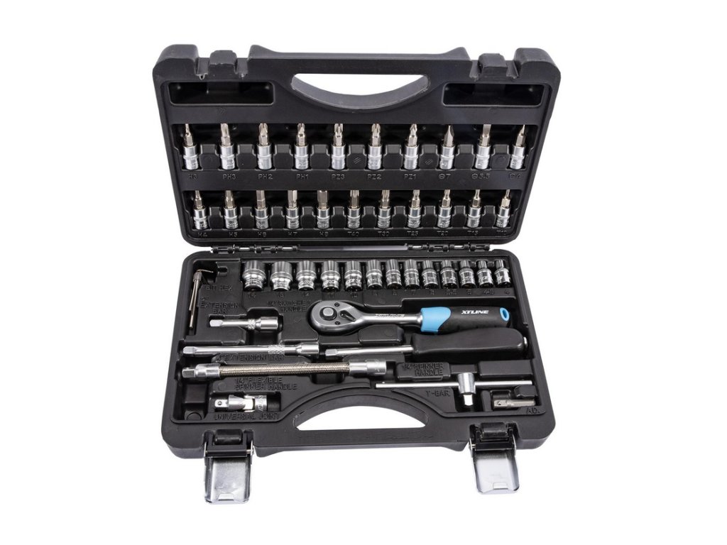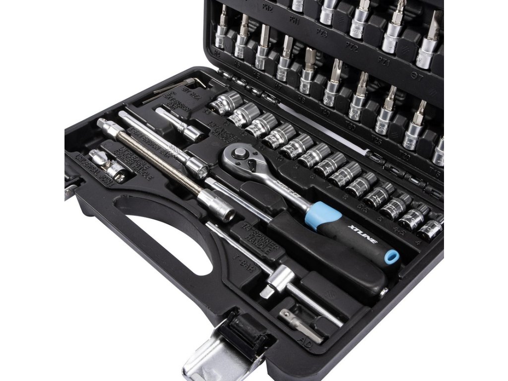 Sada hlavic o velikosti 1/4" nabízí širokou škálu nástrojů, která je ideální pro široké spektrum úkolů. Vše uloženo v pevném plastovém kufru s kovovými přezkami pro lepší zabezpečení a snadné přenášení. Sada je ideální pro ty, kteří hledají komplexní řešení pro běžné opravy nebo montáže s důrazem na odolnost a praktičnost.